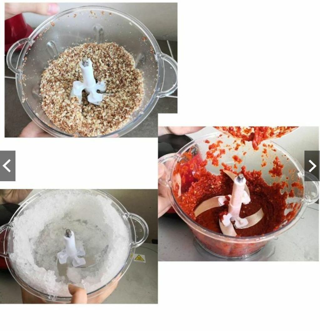 - Fast & convenient.- Very easy to wash.- Multipurpose. Applicable for meat (beef, fish), nuts, vegetable, fruits and etc. Just press the top button and the grinder/blender shall blend, release the button to stop grinding/blending.